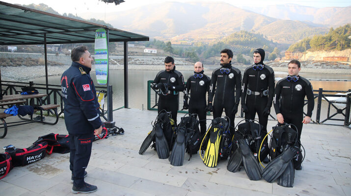 Deniz ve iç sularda boğulma ve kayıp arama faaliyetleri için kurulan Hatay itfaiyesi dalgıç ekibi, yaz kış demeden haftanın üç günü gölette gerçekleştirilen yüzme ve dalış antrenmanlarıyla göreve hazır hale geliyor..