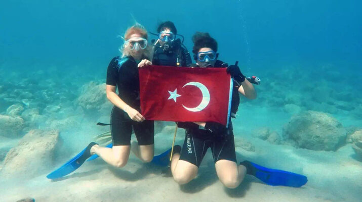 İskenderun’da uzun yıllar Güney Tv’de televizyonculuk yapan Hasret Karakuş, oğlu Eray Boşnak’la Mersin Aydıncık’ta muhteşem bir etkinliğe imza attı. 30 Ağustos Zafer Bayramı dolayısıyla denizin 18 metre derinliğinde Ayyıldızlı Türk Bayrağı’nı 16 yaşındaki oğlu Eray Boşnak’la açan Hasret Karakuş, oğlunun en büyük hayalini gerçekleştirmenin mutluluğunu yaşadı. İskenderun Başkent Koleji 11’nci sınıf öğrencisi 16 yaşındaki Eray Boşnak, küçük yaşlarda annesi Hasret Karakuş’la başladığı dalış sporunda ilerlediği gibi, denizin 18 metre derinliğinde Ayyıldızlı Türk Bayrağını açmanın gururunu yaşadı. Sosyal medyada büyük ilgi gören su altında ayyıldızlı Türk Bayrağın açıldığı Anne Hasret Karakuş ile oğlu Eray Boşnak’ın fotoğrafı takdir ve beğeni topladı.