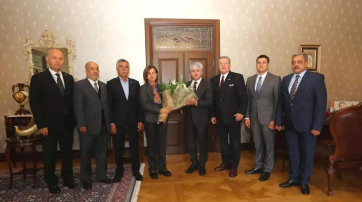 Antakya Ticaret Borsası Yönetim Kurulu Başkanı Ali Celal Mursaloğlu, Yönetim Kurulu Başkan Yardımcısı Mesut Güleryüz ve Mehmet Bulanık, Yönetim Kurulu Sayman Üye Gönül Uğurlu, Yönetim Kurulu Üyesi Metin Tiftikçi, Meclis Uyesi Kazım Kuseyri ile Genel Sekreter Metin Kuseyri Borsa seçimleri sonrası Hatay Valisi Rahmi Doğan’ı makamında ziyaret etti.