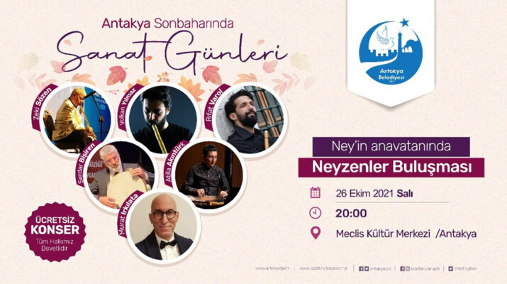 Antakya’nın Son Baharında Sanat Günleri” teması ile Kültür ve Turizm Bakanlığı bünyesinde olan değerli Neyzenler, Ney’in Anavatanı Antakya’da dinleyicileriyle buluşacaklar.