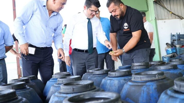 Arsuzlu birçok vatandaş için temel geçim kaynağı olan zeytinin bereketli yolculuğunu yakından takip etmek isteyen Kaymakam Eroğlu’nu Üçgüllük Mahallesi’ndeki modern işletmede, işletme sahibi Yusuf Nal ile ​Arsuz Tarım ve Orman Müdürlüğü personelleri karşıladı.