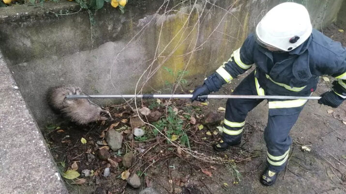 Bölgeye giden itfaiye ekipleri, porsuğu havuzdan çıkardı.