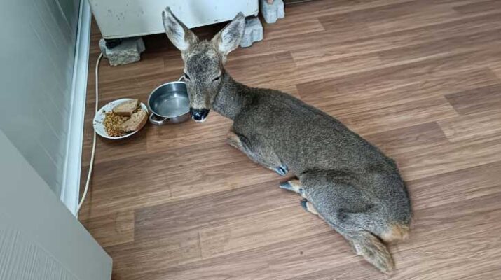 Arsuz’da bitkin halde bulunan yavru karaca, kontrollerinin ardından doğal ortamına bırakıldı.