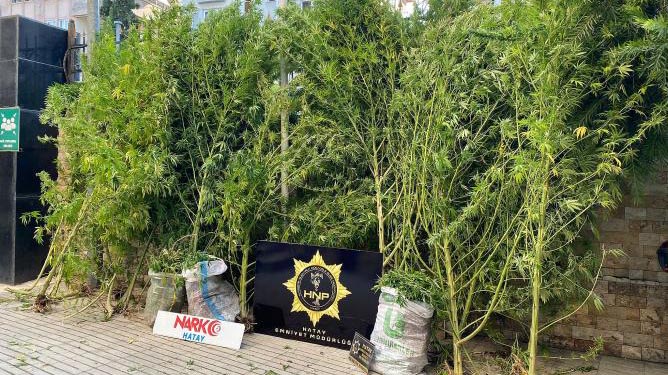 Hatay’ın Antakya ilçesinde aynı mahallede farklı adreste arama yapan emniyet Müdürlüğü ekipleri, boyları 1,5 ile 4 metre arası değişen ekili 43 kök hint keneviri, 870 gram kubar esrar ele geçirdi.