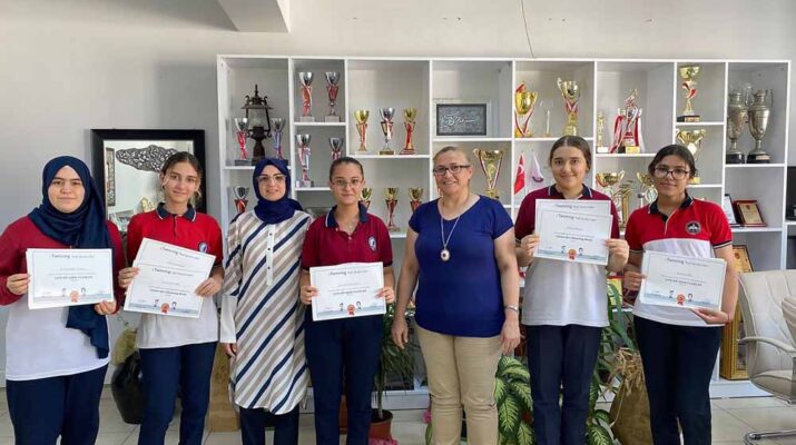 “İşleyen Akıl” ve “ÇaÄŸları AÅŸan Yıldızlar” adlı eTwinning projelerinde yer alan öğrenciler, Nisanur AteÅŸ, Güldane ElmacıoÄŸlu, Hatice Rabia Atlamaz, Åžefika Çekmen ve Fatma Nur Cevri’ye okul müdürü Safiye KöseoÄŸlu tarafından eTwinning öğrenci kalite etiketleri verildi.
