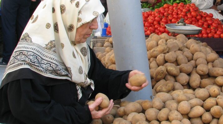 Yokluğun ve sefaletin kol gezdiği Antakya ve Defne ilçelerinde ki pazarlardan birinden çektiğimiz fotoğrafta üzüm ve domates görülüyor. Pazar da ki diğer satıcılarda da durum aynı. En fazla iki çeşidin bulunduğu semt pazarına dönüştürülmüş alanlar içler acısı halde.