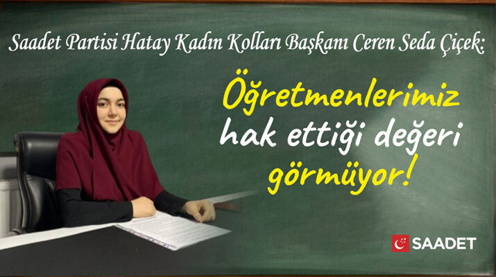 Saadet Partisi Hatay Kadın Kolları Başkanı Ceren Seda Çiçek Öğretmenler Günü vesilesiyle bir mesaj yayımlayarak, “Öğretmenlerimiz, hak ettiği değeri görmüyor. Atanamayan ve KHK mağduru öğretmenlerin de sorunları mutlaka acil olarak çözülmelidir” dedi.