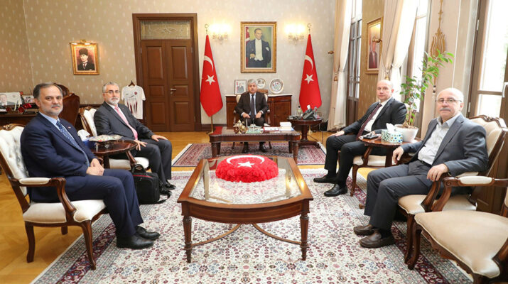 Cumhurbaşkanlığı Sosyal Politikalar Kurulu Başkan V. Prof. Dr. Vedat Işıkhan, Çalışma ve Sosyal Güvenlik Bakanlığı Bakan Yardımcısı Prof. Dr. Lutfihak Alpkan ve beraberindeki heyet ile birlikte, Valimiz Rahmi Doğan’ı makamında ziyaret etti.