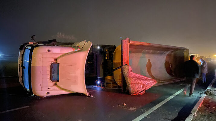 Öte yandan, aynı sürücünün başka bir hafriyat kamyonuyla 3 hafta önce de aynı yolda yön tabelasına çarptığı öğrenildi.