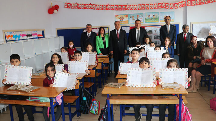 Defne Kaymakamı Kadir Okatan, Defne Belediye Başkanı İbrahim Güzel ve İlçe Milli Eğitim Müdürü Kemal Gülistan, Cengiz Topel İlkokulu’nda düzenlenen törene katıldı.
