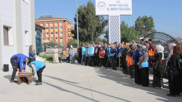 İçişleri Bakanlığı Afet ve Acil Durum Yönetimi Başkanlığı (AFAD) ve Diyanet İşleri Başkanlığı iş birliğinde ülke genelinde eş zamanlı gerçekleştirilen tatbikat kapsamında, Hatay’da İl Müftülüğüne bağlı kurum ve yurtlarda sirenlerin çalmasının ardından görevliler ve öğrenciler “çök, kapan ve tutun” uygulaması yaptı.