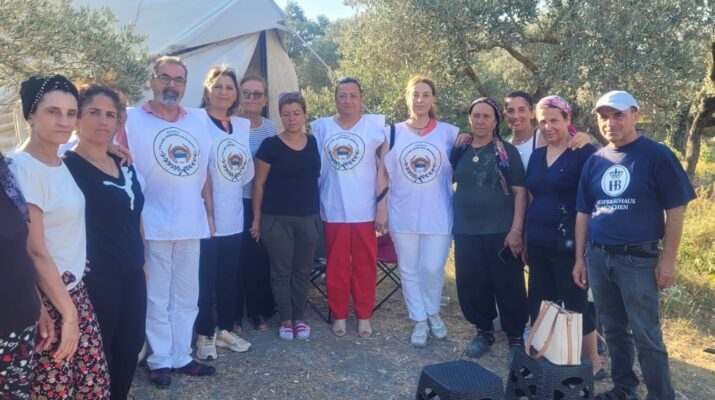 Defne İlçesi’ne bağlı Ballıöz Mahallesi’nde yetkili kurum tarafından yapılan yol çalışması için mülk sahibine bilgi verilmeden zeytin ağaçlarının kesilmesi sonrasında Çiğdem Mutlu adlı vatandaşın başlattığı direnişe AÇKD Başkanı Nilgün Karasu ve beraberinde bulunan yönetim kurulu üyeleri destek verdi.