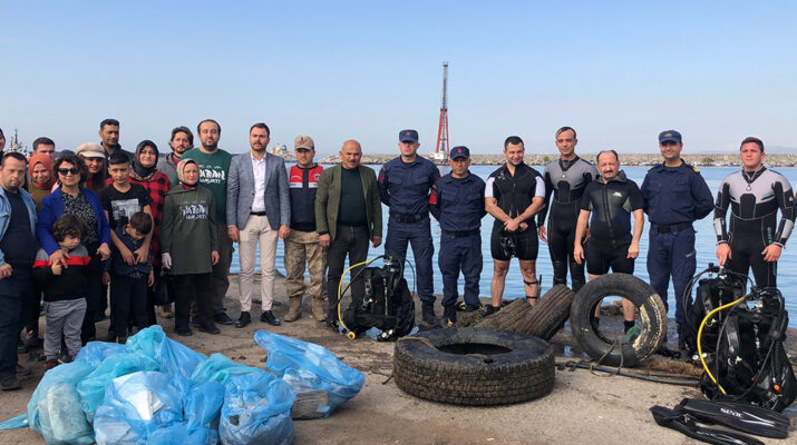 Dalış yapan Kaymakam Aydın Ergün ile Sahil Güvenlik Doğu Akdeniz Grup Komutanlığı ekiplerinin su altındaki atıkları topladığı etkinlikte, jandarma ve polis ekipleri, dernek üyeleri ile gönüllüler de kıyıyı temizledi.