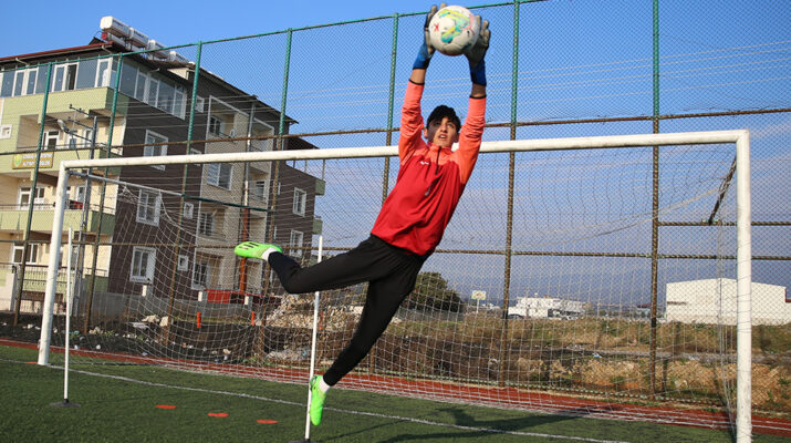 Süper Lig’de mücadele eden Atakaş Hatayspor’un iç saha maçlarında top toplayıcılık da yapan Emir, kaleci antrenörü Mehmet Öz sayesinde kendisini daha da geliştirdi.