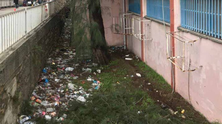 Eski Devlet Hastanesi binasının yan tarafı ambalaj, ağaç dalları ve plastik şişe gibi atıklar ile çöp alanına çevrildi.