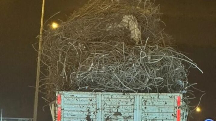 Depremler sonucunda hasar alan binaların yıkımı aralıksız devam ederken binalardan çıkan demirler yeniden işlenmek için kamyonlara doldurularak yeniden işlenmek için yola çıkıyor. Enkazlardan çıkan demirleri taşıyan kamyonlar trafikte tehlike saçmaya devam ediyor.