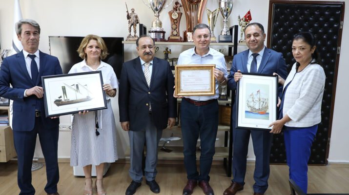 HBB Genel Sekreter Yardımcıları Metin Açık ve Bülent Ok ile Ulaşım Daire Başkanı Nuri Baycan, Tersaneler ve Kıyı Yapıları Genel Müdürlüğünden HBB şirketi olan Hatay Ulaşım ve Turizm A.Ş. adına aldığı Kıyı Tesisi İşletme İzin Belgesi’ni Hatay Büyükşehir Belediye Başkanı Doç.Dr.Lütfü Savaş’a sundu.