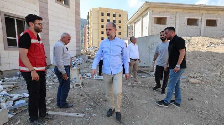 Belen Belediye Başkanı İbrahim Gül, ilçe Başkanı Abdullah Önder ve teşkilat yöneticileri ile birlikte 1166 deprem konutu şantiyesini gezen Özel, yakın zamanda hak sahiplerine teslim edilecek olan konutları inceleyerek, çalışmalarda gelinen son durum hakkında bilgi aldı.