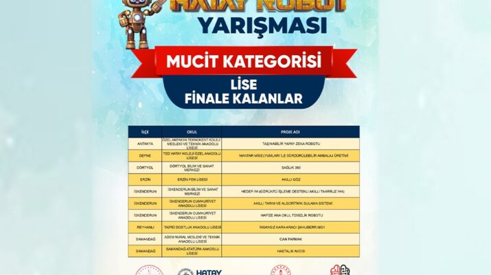 Hatay Büyükşehir Belediyesi (HBB), Hatay Valiliği ve İl Milli Eğitim Müdürlüğü tarafından organize edilen Hatay Robot Yarışması’nda (HatayBot) finale kalan 30 proje belli oldu.