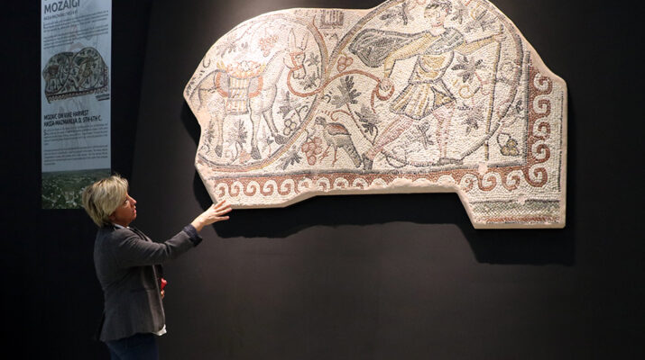 Üzüm yetiştiriciliğinde önemli bir yere sahip Hatay’ın Hassa ilçesindeki kazı çalışmalarında gün yüzüne çıkarılan ve üzerinde üzüm hasadını anlatan figürlerin bulunduğu Geç Roma Dönemi’ne ait mozaik, ziyaretçisiyle kasım ayında buluşacak.