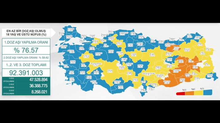Koronavirüsle mücadelede aşılamayı esas alan Sağlık Bakanlığı’nın resmi verilerine göre, ilimiz Hatay’da aşılanan kişilerin toplam nüfusa oranı % 75’i geçti. Böylelikle, Türkiye insidans haritasında ilimiz Hatay, mavi renge boyandı.