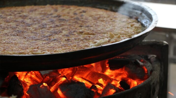 Hatay’a gelen yerli ve yabancı turistlerin ilk denemek istedikleri lezzetlerden biri olan künefe hem köz ateşinde hem de ocakta pişiriliyor.