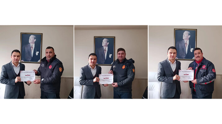 İki vatandaşı kurtararak kahramanlık örneği sergileyen itfaiye personelleri, Hatay Büyükşehir İtfaiye Daire Başkanlığı’nda gerçekleştirilen törende başarı belgelerini aldı. İtfaiye personellerine başarı belgelerini veren Hatay Büyükşehir Belediyesi İtfaiye Daire Başkanlığı 1. Bölge Müdürü Selçuk Ersoy, canlarını hiçe sayarak gösterdikleri kahramanlıktan ötürü personellerini tebrik etti.