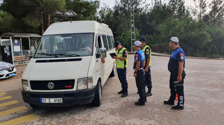 Hatay Büyükşehir Belediyesi Zabıta Dairesi Başkanlığına bağlı trafik ekipleri Jandarma ile koordineli bir şekilde toplu taşıma araçları ve sürücülere yönelik denetim gerçekleştirdi.