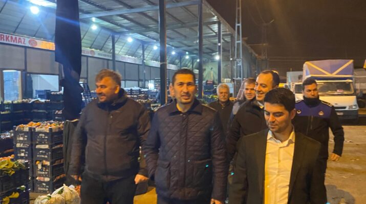 HBB Genel Sekreter Yardımcısı Uğur Kandemir, Tarımsal Hizmetler Dairesi Başkanı Sadettin Çakır ve İnsan Kaynakları ve Eğitim Dairesi Başkanı Bahattin Toptaş’ın bulunduğu heyet; Antakya Yaş Meyve ve Sebze Hali esnafı ile Antakya Meyve ve Sebze Kabzımal Komisyoncular Derneği Başkanı Sedat Mansuroğlu’nu ziyaret etti.