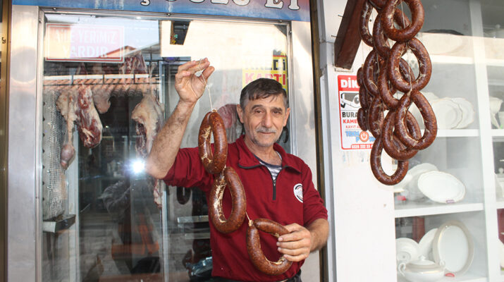 Sucuk yapımında etin taze kıyılmış olması gerektiğini belirten Yahyaoğlu, “Müşterilerimiz genellikle dana ve koyun eti karışık sucuk tercih ediyor. Elbette sadece dana eti isteyende var. Sipariş üzerine taze taze üretim yapıyoruz. Burada bulunan sucuklar iş yerinde fazla beklemez. Olgunlaştığı gibi satışı yapılır. Sucuk etinde önemli şey baharat dengesidir. Etin tadı gitmemeli ama o baharatların aroması da ufaktan gelmelidir. İç harç hazırlandıktan sonra dana bağırsağı dolduruyoruz. Sıcak havalarda 3 günde, soğuk havalarda ise 7 günde bir sucuk tüketilmeye hazır oluyor. İçinde koruyucu bir madde olmadığı için hızlı tüketilmesinde fayda vardır” ifadelerini kullandı.