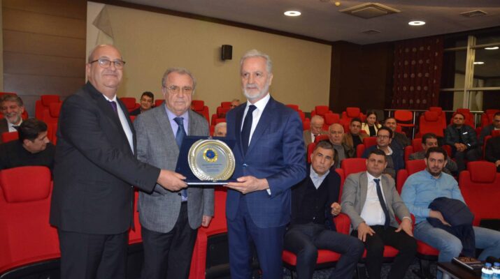 Toplantı sonunda, İTSO Yönetim Kurulu Başkanı Levent Hakkı Yılmaz ve İMEAK DTO İskenderun Şubesi Yönetim Kurulu Başkanı Kemal Kutlu, İTSO Ocak ayı meclisine konuk olan bölgemizin önemi bilim adamlarından Prof. Dr. İskender Sayek’e günün anısına plaket takdim ettiler.