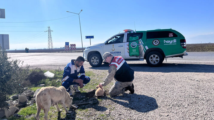 Hatay’da jandarma ekipleri, sokak hayvanları için 250 kilogram mama bıraktı.