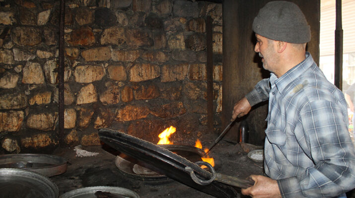 Uzun Çarşı’da 53 yıl önce babasından öğrendiği mesleği kalaycılığı üçüncü kuşak olarak devam ettiren Muratoğlu, sabahın erken saatlerinde ocağın başında olduğunu söyledi.