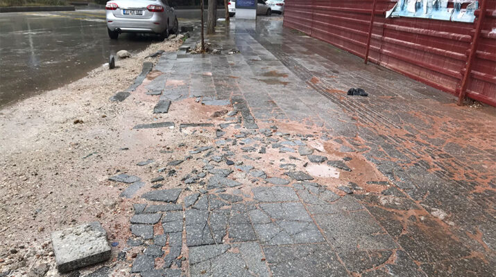 Antakya’da pek çok noktada yeni yapılan inşaatlarla beraber kaldırım kenarları hasar görüyor.