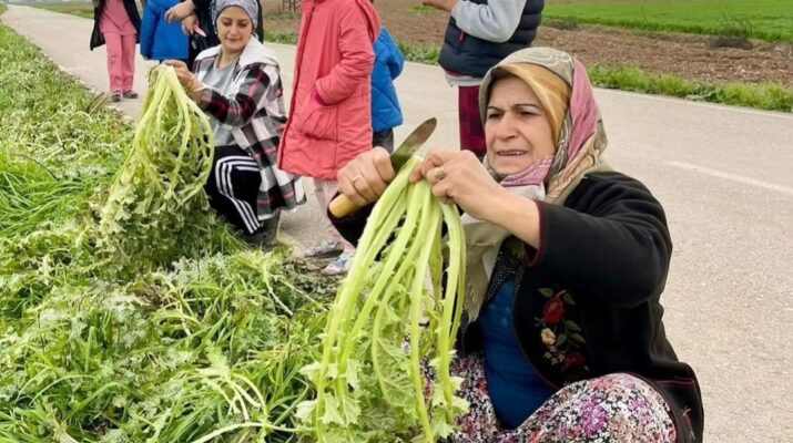 Kent genelinde buldukları yeşil alanlardan bir takım yenilebilir otları toplayarak tencerelerine götüren kadınlar kömeçten sonra Kangal (Kenger) toplama mesaisine başladılar.