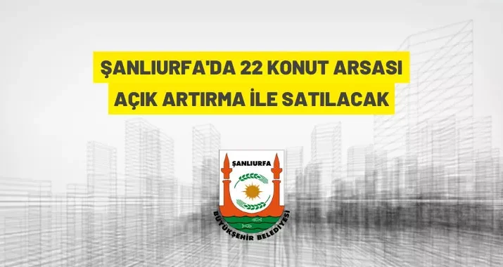Mülkiyeti Şanlıurfa Büyükşehir Belediyesi’ne ait Kızlar mahallesinde bulunan 22 konut arsası, 2886 Sayılı Devlet İhale Kanunu’nun 45. maddesine göre açık teklif usulü ile satılacak.