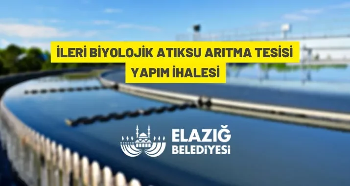 Elazığ Belediyesi tarafından Atıksu Arıtma Tesisi yapımı için ihale düzenlenecek. İleri Biyolojik Atıksu Arıtma Tesisi (Biyolojik Azot ve Fosfor Giderimli Uzun Havalandırmalı Aktif Çamur
