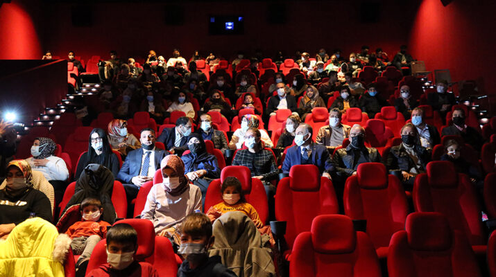 Bir alışveriÅŸ merkezinin sinema salonunda, Ferhat Gedik’in 68 yaşındaki annesi Hatice Gedik ile ÅŸehit ailelerinin de izlediÄŸi film öncesinde, İlçe Müftüsü Osman Åžekerci Kur’an-ı Kerim ve dua okudu.