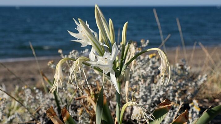 Hatay’da Arsuz ve Samandağ sahillerinde görülen, beyaz ve hoş kokulu çiçekleriyle dikkat çeken kum zambakları, kum taneleri üzerinde özdeşleşen yeşil yapraklarıyla adeta sahilleri süslerken, doğanın bu harika çiçeğini korumak için vatandaşlara büyük görev düşüyor.