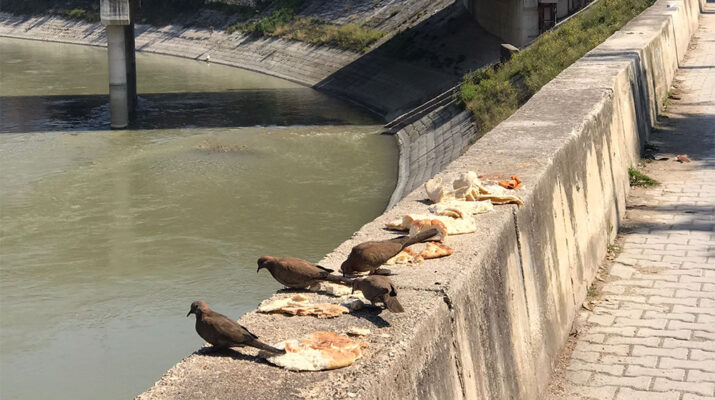 Doğada yem bulmakta güçlük çeken kuşlar için vatandaşlar Asi Nehri kenarında bulunan korkuluklara yem bıraktılar.