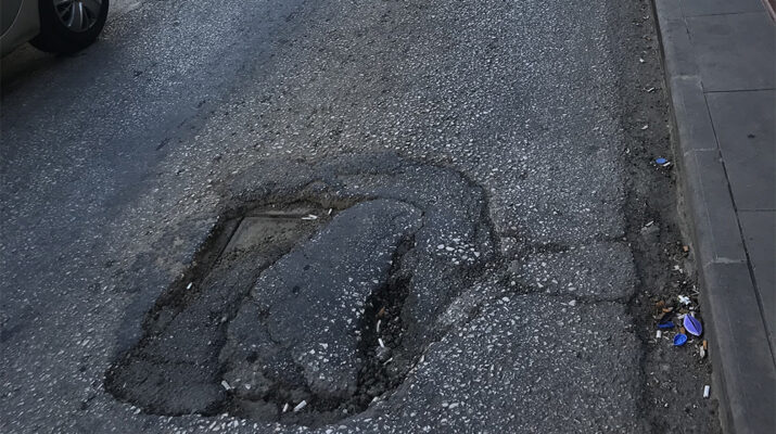 Kentin farklı noktalarında yaşanan çukurlu yol sorunu, tarihi cadde konumunda olan Kurtuluş Caddesi’nde de yaşanıyor.