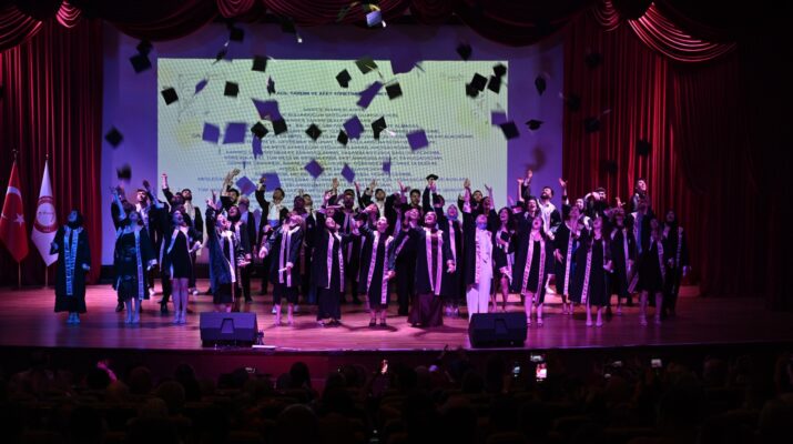Belge takdiminin ardından mezun öğrenciler, keplerini havaya atarak mezuniyet coşkusunu doyasıya yaşadı.
