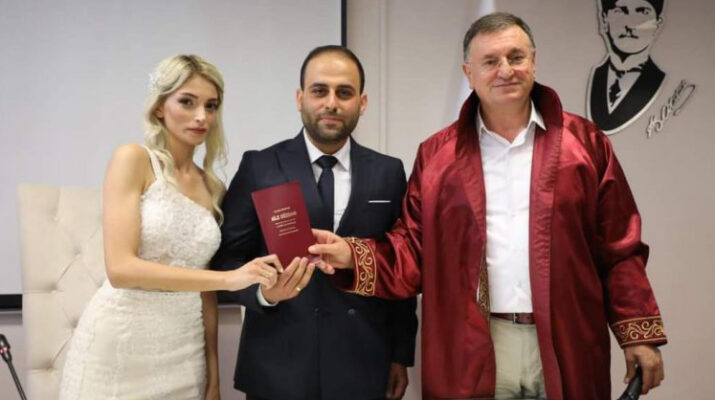 Genç çifte hayırlı olsun diyerek bir ömür boyu mutluluklar dileğinde bulunan Hatay Büyükşehir Belediye Başkanı Doç.Dr.Lütfü Savaş evlilik cüzdanını Duygu Nur’a teslim etti.