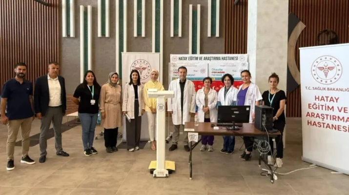 Obeziteyle mücadele ve sağlıklı yaşam bilincini artırmak amacıyla Hatay Eğitim ve Araştırma Hastanesi’nde “Obezite ve Sağlıklı Yaşam” temalı bilgilendirme standı kuruldu.