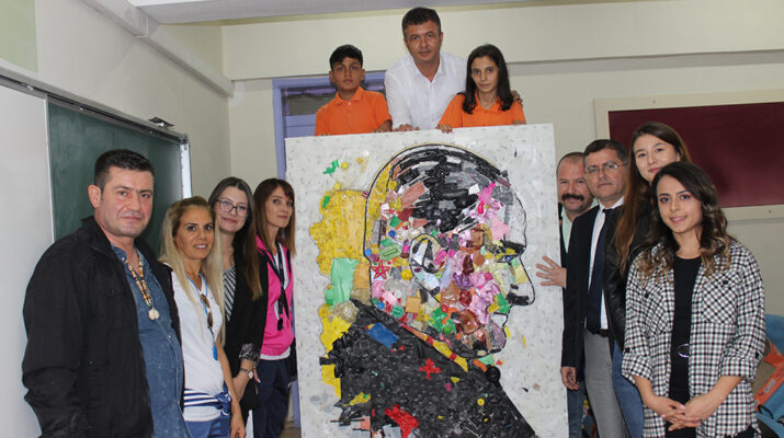 Bunları okullarındaki atölyede mozaik ustası Mervan Altınorak’ın öncülüğünde bir araya getiren öğrenciler, bir aylık çalışmanın ardından 2,5 metrelik Atatürk portresi oluÅŸturdu.
