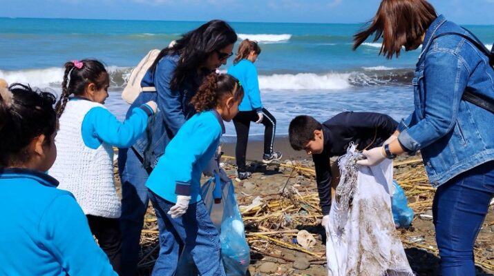 Gökmeydan İlkokulu öğrencileri, çevre farkındalığını destekleyen eTwinning projesi kapsamında Gözcüler Sahili’nde çöp topladı.