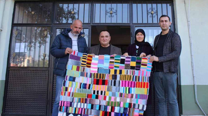 “Okulumuz öğretmenlerinden Abdullah Atmaca, Mehmet Doğan ve Raziye Kar yönetiminde ve diğer ortak okullar işbirliği ile düzenlenen ‘Duygulardan Dokumalara’ isimli eTwinning projesi kapsamında dünyanın en renkli ve en anlamlı kilim dokuma çalışması gerçekleştirildi. Birçok uygarlığa ev sahipliği yapan Anadolu, çeşitli kültürel altyapıya sahip olmuştur. Geleneksel Türk El Sanatları içerisinde yer alan kilim dokuma sanatı geçmişten günümüze kadar Anadolu kültürünün bir parçası haline gelmiştir. Unutulmaya yüz tutmuş kilim dokuma sanatını, farklı kültür ve özelliklere sahip genç nesil öğrenciler ile birlikte yeniden oluşturmak ve gelecek kuşaklara aktarmak proje konusunu oluşturmaktadır. Her kesimden farklı kültür ve özelliklere sahip bireylerin bulunduğu Anadolu’da bu farklılığı bir farkındalık olarak yansıtmak için öğrencilerin yaptığı kilim dokuma çalışmalarını bir araya getirerek bir bütün halinde ürün ortaya çıkarılmıştır. Çalışmada özgün ifade biçimlerinin örneklenmesi amaçlanmıştır. Yapılmış kilim dokuma çalışmasında farklı renkler ile temsilen her bir bireyin önemli ve farklı olduğunu yansıtmak önem arz etmektedir. Farklı kültür ve bireyleri temsilen yapılmış bu proje çalışmasının örnek teşkil edip duygusal farkındalık ile alana katkı sağlayacağı aşikardır.”