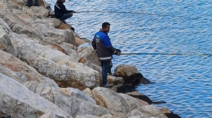 Ellerinde ki oltaları liman sahasında ki kayalıklardan denize sarkıtan amatör olta balıkçıları yakaladıkları balıklarla evlerine dönüyorlar.