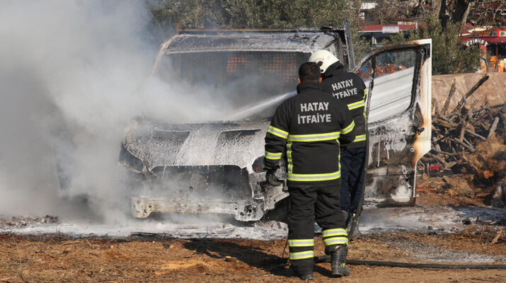 Hatay’ın Altınözü ilçesinde, park halindeki ticari aracın motor bölümünde çıkan yangın itfaiye ekiplerince söndürüldü.