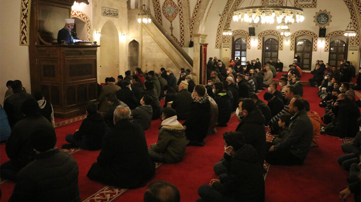 Camiye gelen vatandaÅŸlar, Hatay İl Müftüsü Yardımcısı Murat Akçay’ın verdiÄŸi vaazın ardından namaz kıldı.
